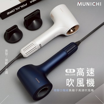 點我下載【MUNICHI 沐尼黑】負離子無刷吹風機 高速吹風機 大風量吹風機 潤髮 抗毛躁 護髮吹風機 美型時尚 MR.COIN