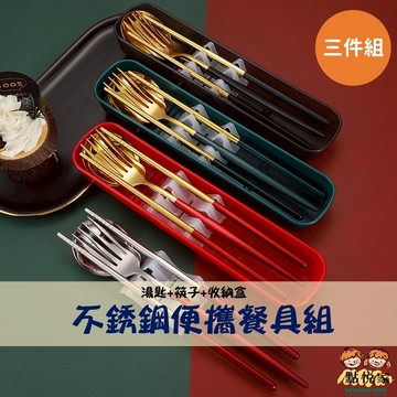 【點悅家】不銹鋼便攜餐具組 304不鏽鋼 便攜旅行 筷子 湯匙 附收納盒(三件組) 高顏值 ins風 G42