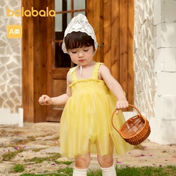 Balabala嬰兒連衣裙女童嬰兒公主裙2024新款夏季紗裙精緻甜美