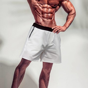 寬邊腰帶騷粉肌肉健身短褲男士彈力深蹲訓練三分褲男純棉練腿神褲