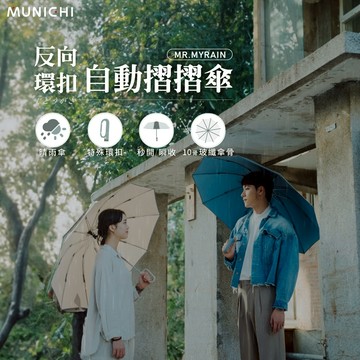 【MUNICHI 沐尼黑】反向環扣自動摺摺傘 雨傘 反向傘 自動傘 勾勾傘 UPF50+ 10骨 MR.MYRAIN