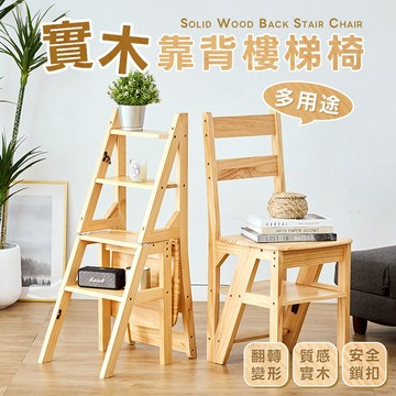 【樂嫚妮】樂嫚妮 實木靠背樓梯椅 折疊凳 梯子