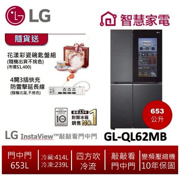 立刻下載LG樂金GL-QL62MB InstaView™敲敲看門中門冰箱 653公升/夜墨黑 送花漾碗匙盤組+延長線