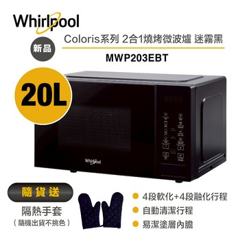 立刻下載Whirlpool惠而浦 MWP203EBT Coloris系列 2合1燒烤微波爐20L/迷霧黑 送隔熱手套