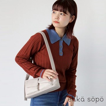 ehka sopo 復古撞色滾邊半排釦翻領針織上衣(0F000107310)