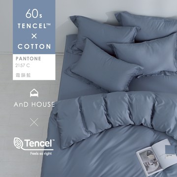 AnD House 天絲棉60支-霜韻藍-床包被套組|安庭家居 素色 顏色任搭