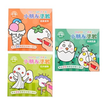 【mamayo】小朋友主題塗鴉本/著色本/繪畫本/繪圖本 三入組(蔬果食物/花卉植物/鳥類昆蟲)1-6歲適用