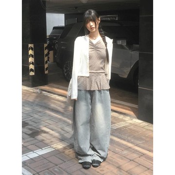 Codibook|韓國 wonderwonder 薄霧灰水洗側褶寬版牛仔褲[預購]牛仔褲 運動褲 女裝