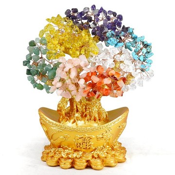 【吉祥開運坊】招財樹系列【招財 水晶招財樹 含聚寶袋中型 五種顏色可供擇】開光 淨化