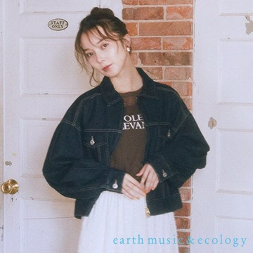 點我下載earth music&ecology 寬袖口袋設計短版翻領牛仔外套(01000608700)