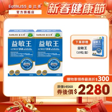 【EatBLISS益比喜】健字號 益敏王LCW23膠囊 60粒x2入組 加贈10顆|熱封型益生菌 後生元 調整過敏體質