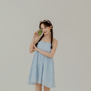 天絲棉細褶細肩帶洋裝(兩色)