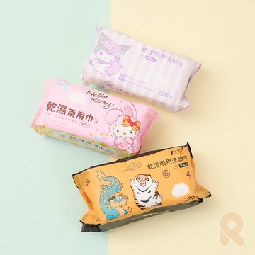 Rfunshop|100抽乾濕兩用巾 史努比 胖虎 凱蒂貓 酷洛米 洗臉巾 卸妝 保養 美容工具 紙巾 WF048