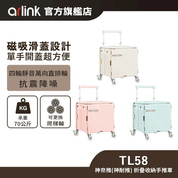 Arlink 神奈推(神耐推) 貴婦級55L多功能萬向直排輪 折疊收納手推車|磁吸滑蓋版 TL58