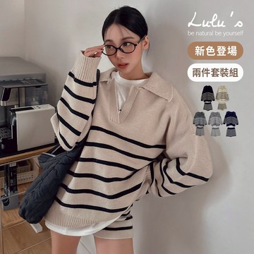 LULUS/套裝翻領橫紋上衣+橫紋針織短褲5色【A01240766】針織套裝 兩件式 251105