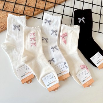 點我下載正韓國中筒襪 流行襪 蝴蝶結襪 芭蕾緹花 壓紋造型 小花朵 花卉 INS風 甜美可愛 氣質女襪 台灣出貨 台灣賣家