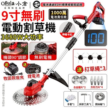 【Ogula小倉】割草機 除草機 無刷9寸割草機【送鋼絲輪+豪華大禮包】帶電量顯示 3680W大功率割草機-品牌保固