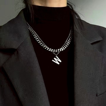 長方形吊墜鋼制項鏈男女簡約個性輕奢設計感ins風鏈條毛衣鏈潮流