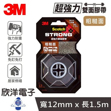3M Scotch 超強力雙面膠帶 粗糙面專用 寬12mmx長1.5m (V1203N) 強力雙面膠 3m強力膠帶