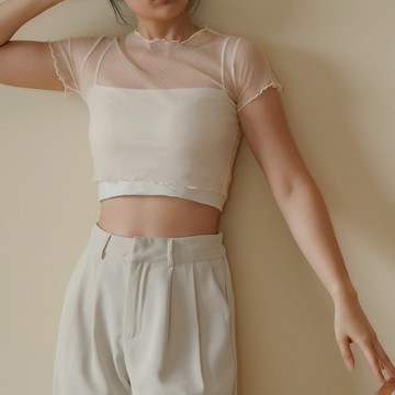 【Ourstudio】夏日點點透紗捲邊上衣 白色 杏色 黑色(現貨)