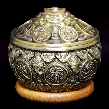 點我下載【吉祥開運坊】銅聚寶盆系列【精緻浮雕厚銅製聚寶盆小尺寸 古銅色 附五色石 五帝錢 元寶】開光 擇日