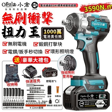 【Ogula小倉】電動扳手 無刷衝擊扳手 鋰電扳手 電量顯示 木工汽修套筒風炮強力扳手 3590N超大扭力【品牌保固】