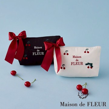 Maison de FLEUR 可愛櫻桃刺繡蝴蝶結小型收納包(08000385700)