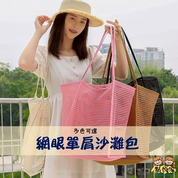 【點悅家】夏日網眼單肩沙灘包 海邊沙灘包 網眼手提包 購物袋 戶外旅行包 多色可選 A22