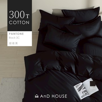 AnD House 精梳純棉300織-寂夜黑-床包被套組|安庭家居 素色 顏色任搭