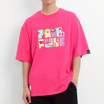 PAUL FRANK 大嘴猴 男 女款中性印花字母 落肩 短袖T恤-中紅
