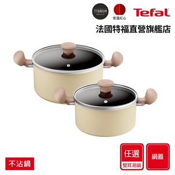 Tefal法國特福 全新鈦升級-Daisy系列不沾雙耳湯鍋-加蓋(20CM/24CM尺寸任選)(電磁爐適用) 杏仁奶油白