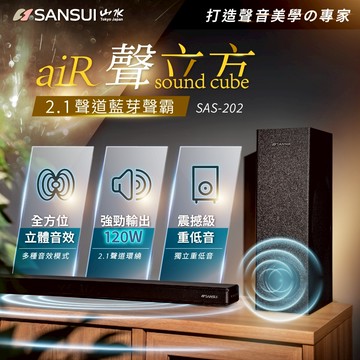 【SANSUI山水】聲立方Air 2.1聲道藍芽聲霸 家庭劇院 藍芽音響 重低音聲霸 電視喇叭 電腦音響 SAS-202