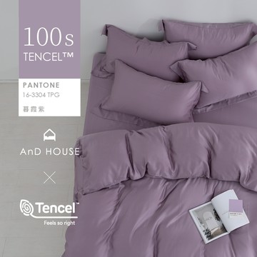 AnD House 天絲100支-暮霞紫-床包被套組|安庭家居 素色 顏色任搭