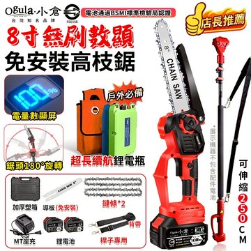 【Ogula小倉】電鏈鋸 8寸無刷電鏈鋸 高枝鋸 電動高空鋸 油壺鏈鋸 2980W大功率帶電量顯示【台灣正品 品牌保固】