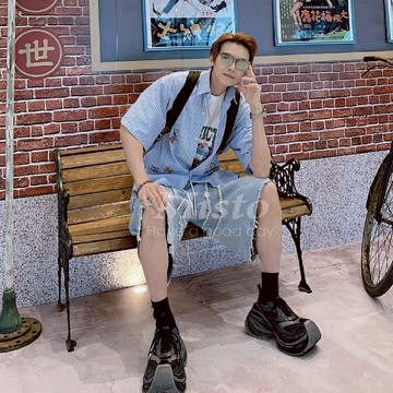 (免運)Batterup2025夏季日系cityboy休閑襯衣條紋廓形寬松短袖襯衫男潮