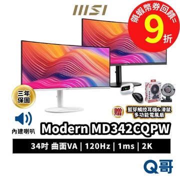 立刻下載MSI Modern MD342CQP MD342CQPW 34吋 螢幕 曲面 120Hz 2K 電腦螢幕 MSI878