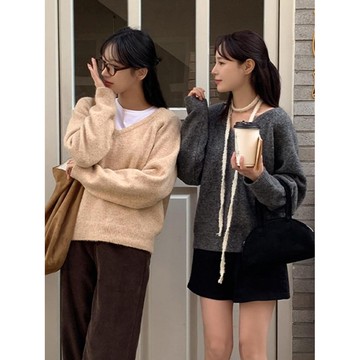 點我下載Codibook|韓國 RIRINCO 柔軟舒適V領寬鬆袖針織上衣[預購]針織衫 毛衣 女裝