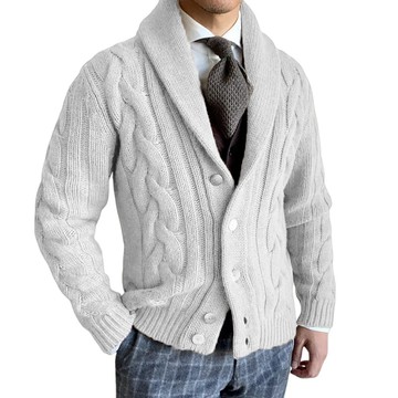 男式男裝針織小外套 長袖鈕扣小外套毛衣外套 絞花男式小外套毛衣