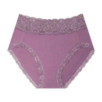 棉感蕾絲花色中腰小褲-深紫