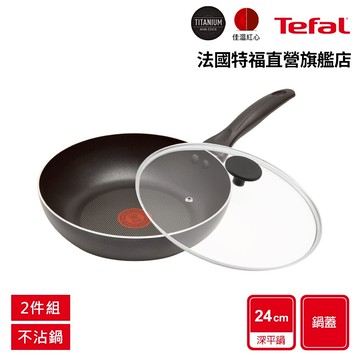 Tefal法國特福 全新鈦升級-爵士系列24CM不沾深平鍋(鍋+蓋/鍋+蓋+鏟)