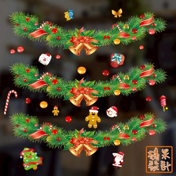 【橘果設計】耶誕吊飾 鈴鐺花叢 聖誕壁貼 無痕背膠 壁貼 牆貼 壁紙 DIY佈置 窗貼 佈置 櫥窗貼 可超取 台灣現貨
