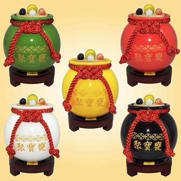 點我下載【吉祥開運坊】【聚財聖品七星五帝錢聚寶盆中型 附木底座 陶瓷聚寶甕 五色可供選擇】開光 擇日