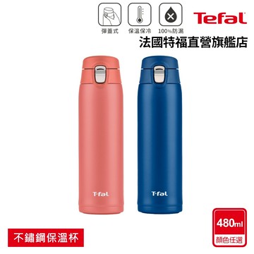 Tefal法國特福 Light &go不鏽鋼輕巧隨行保溫/保冷杯 彈蓋式 480ml (二色可選) 蜜桃紅/海天藍