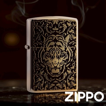 ZIPPO 虎-BM/G(金)防風打火機 銀色機身打火機 貼章工藝 金色老虎 財富權力尊嚴 終身保修 ZA-6-O22