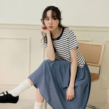 OB嚴選 假兩件橫條紋拼接寬版洋裝 《DA10448》