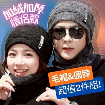 點我下載韓版秋冬毛帽圍脖 現貨隔日到 男女同款 套頭帽貼布 加绒加厚 保暖針織毛線帽&圍脖2件套組72355