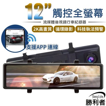 【勝利者】12吋GPS全螢幕行車紀錄器 電子後視鏡 雙鏡頭 2K SONY鏡頭 WIFI連接手機觀看/觸控/測速GPS