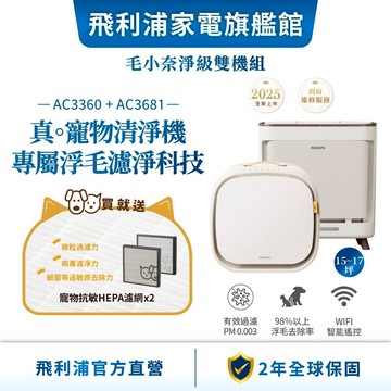 【PHILIPS 飛利浦】毛小奈系列雙機組 標準版AC3681+Lite AC3360 | 清淨