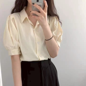 點我下載ZUCA”S - 韓版小眾別緻寬鬆泡泡袖襯衫 短袖上衣 短袖t恤 女裝 顯瘦上衣 衣服 寬鬆上衣 素T - T-57