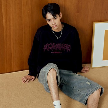 美式衛衣男春秋潮牌復古高街上衣字母印花圓領長袖t恤寬松套頭衫